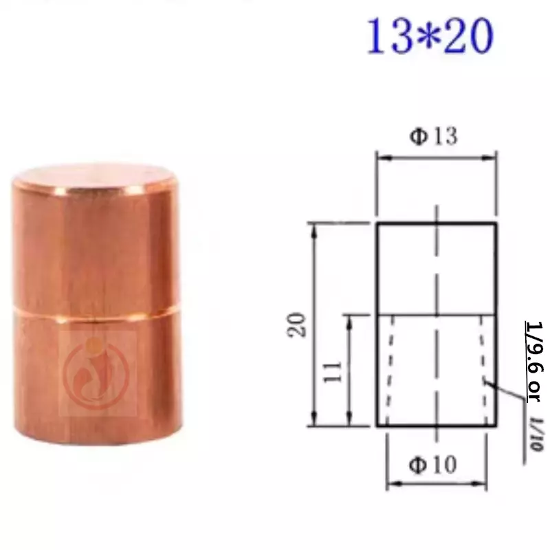 Our flat electrode cap is engineered with a precision-machined planar contact surface (standard flat size 4-15mm in length/width, customizable flat thickness 1-3mm) and a matching inner taper design (1/9.6 standard taper) superscript:1, which perfectly fits electrode shanks of various specifications and ensures tight connection without loosening during high-frequency welding vibration. Made of high-performance copper alloy materials, it combines excellent electrical conductivity, superior high-temperature resistance and strong wear resistance, effectively withstanding the harsh working environment of high heat, high pressure and welding spatter in resistance welding processes. As a cost-effective welding consumable, it typically supports 1000-1200 welding points before needing regrinding or replacement superscript:1, balancing performance and economy for our global customers. Each flat electrode cap undergoes strict quality inspection before leaving the factory, ensuring consistent dimensional accuracy and stable performance, which is crucial for maintaining welding quality in mass production. The smooth planar design ensures uniform heat distribution during welding, avoids workpiece burns or uneven welding seams, and is easy to clean after use, reducing maintenance time and production downtime — a key advantage of planar electrodes in low-current density, high-frequency or long-time welding operations superscript:2.